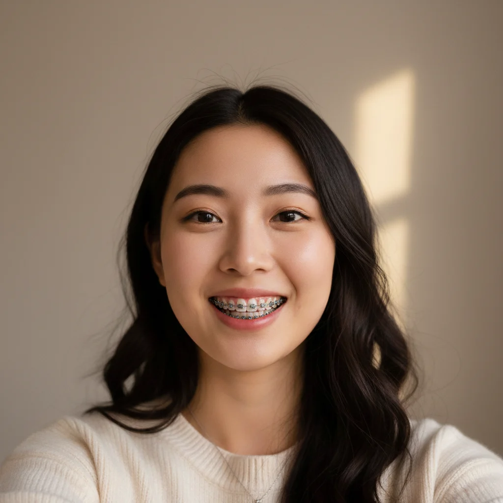 Upload a smiling photo and Image 2 will add lifelike orthodontic metal braces to your teeth instantly